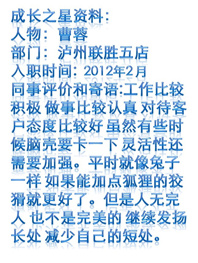 瀘州聯(lián)勝2012年7月成長(zhǎng)之星曹蓉